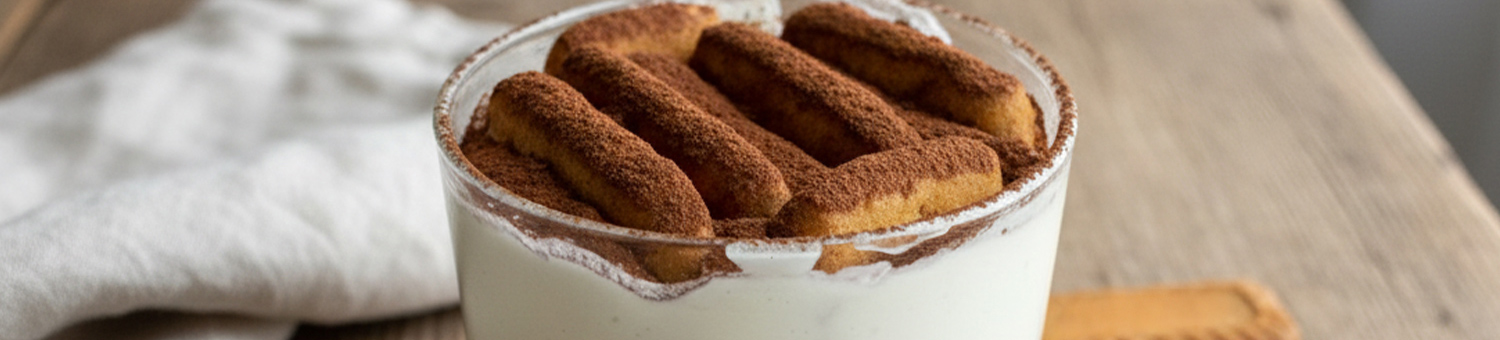 Den Joghurt nach Wunsch mit Kaffee, Vanille oder Zitronensaft verrühren. Anschließend die Hälfte des Joghurts in eine Form oder Schüssel geben und die erste Schicht Keksstücke senkrecht in den Joghurt drücken. Danach den restlichen Joghurt darüber verteilen und eine weitere Lage Kekse senkrecht eindrücken, sodass sie leicht herausragen.