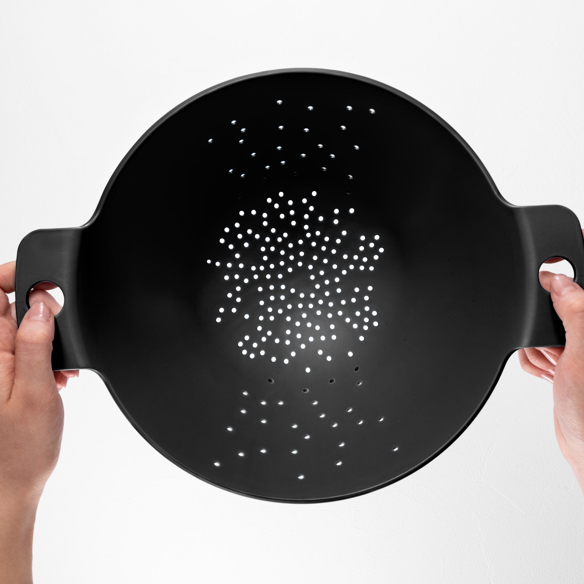 Das Sieb Cosmos von BlimPlus ist Handlich und leicht zu halten. Durch die besondere Anordnung der Löcher können die Nudeln auf der gesamten Oberfläche besser abtropfen, während der Durchmesser der Löcher innen das Entweichen der Spaghetti-Nudeln verhindert.