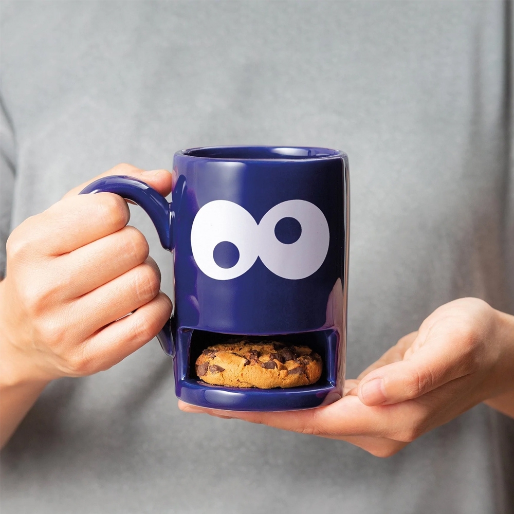 Zu jedem Becher Kakao, Milch, Kaffee oder Tee gehört ein Keks. Im integriertem Keksfach im Becher Mug Monster lassen sich Kekse krümelfrei überall hin mitnehmen. Super am Arbeitsplatz, bei Meetings oder für alle Krümelmonster zu Hause.