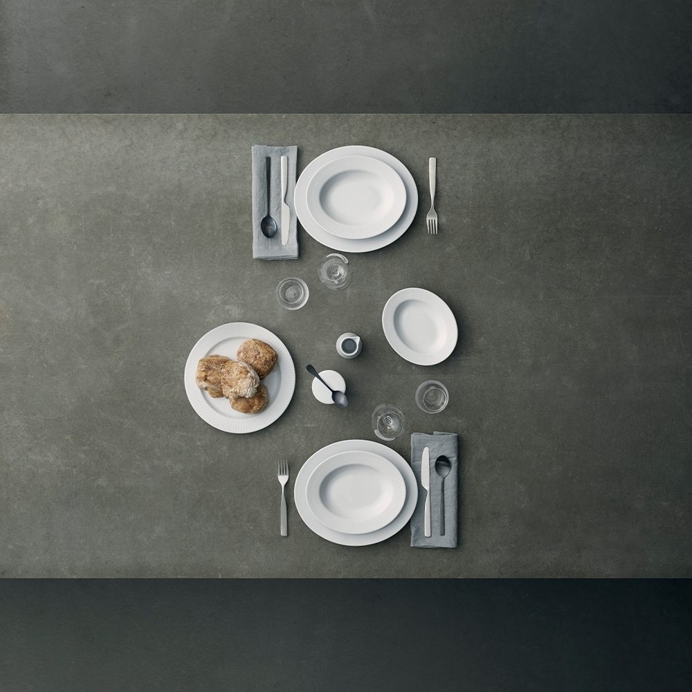 Eva Solo Legio Nova wurde mit Rillen versehen, die einen eleganten Rahmen um die Speisen bilden. Eva Solo ist Sponsor der dänischen Kochnationalmannschaft. Ihre Kochkunst und die Sorgfalt und Liebe, mit der sie ihr Handwerk betreiben, lieferte im Designprozess viel Inspiration. Heraus kam ein Teller mit einem Kranz aus feinen Rillen, der die Speisen regelrecht umrahmt.