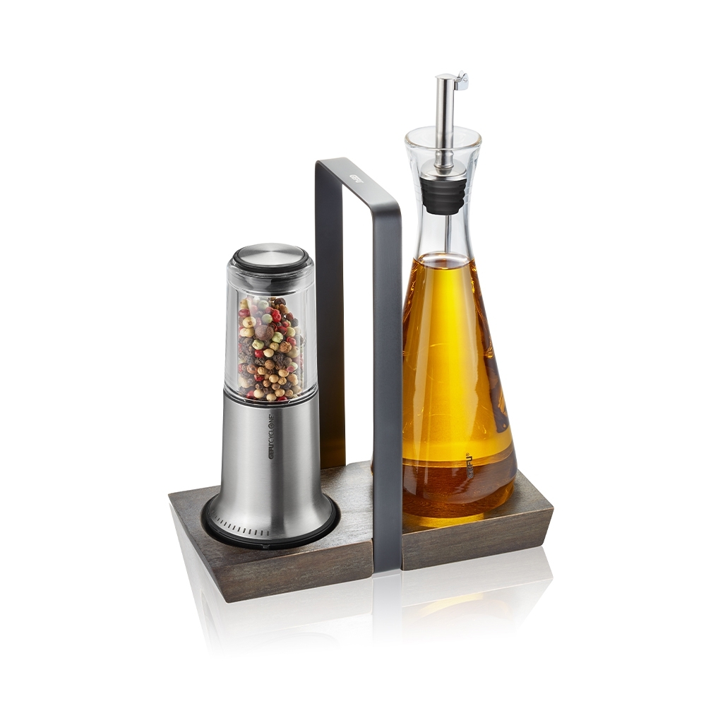 Gefu Menage aus Akazienholz X-PLOSION® - der perfekte Partner für alle X-PLOSION® Mühlen der Größe M, den Chilischneider, die Salz- und Gewürzdosen...