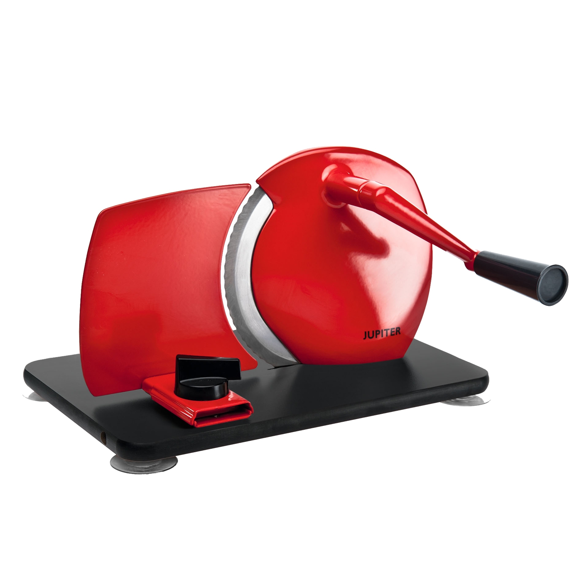 Jupiter - Retro-Allesschneider - eignet sich zum Aufschneiden von geräuchertem Schinken, Hartkäse und Hartwurst, sowie Obst und Gemüse.