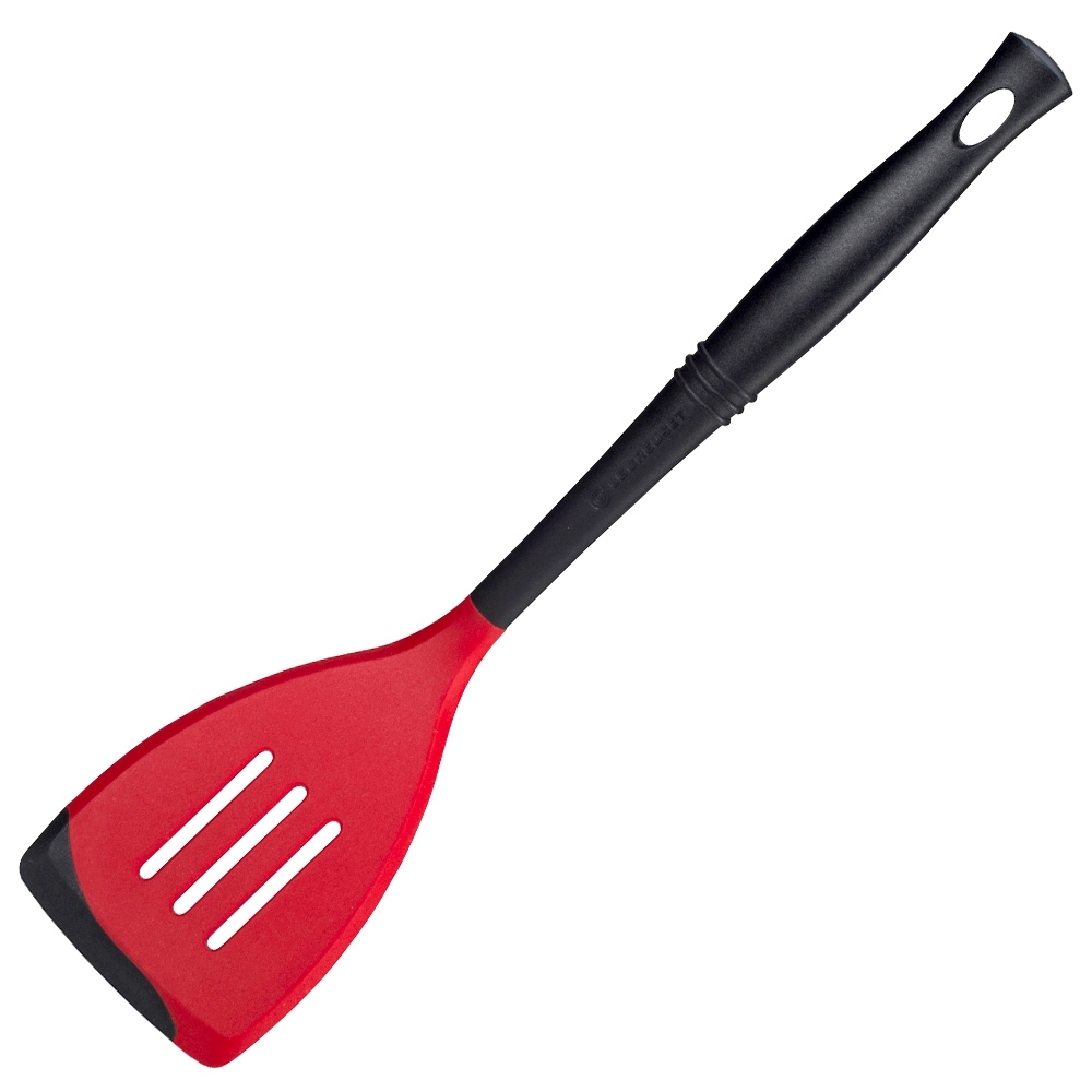 Le Creuset - Revolution Pfannenwender - Schlitze im Silikonkopf verhindern, dass beim Wenden heißes Fett verspritzt