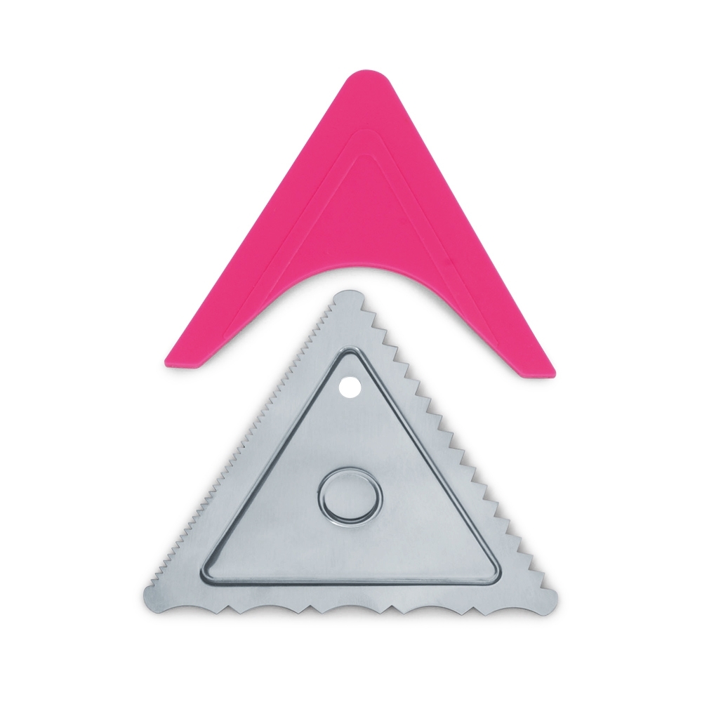 Deko-Schaber für exakte Garnierungen von Tortenrändern und Kuchenoberflächen. Kreeirt 3 unterschiedliche Rillen-Muster.