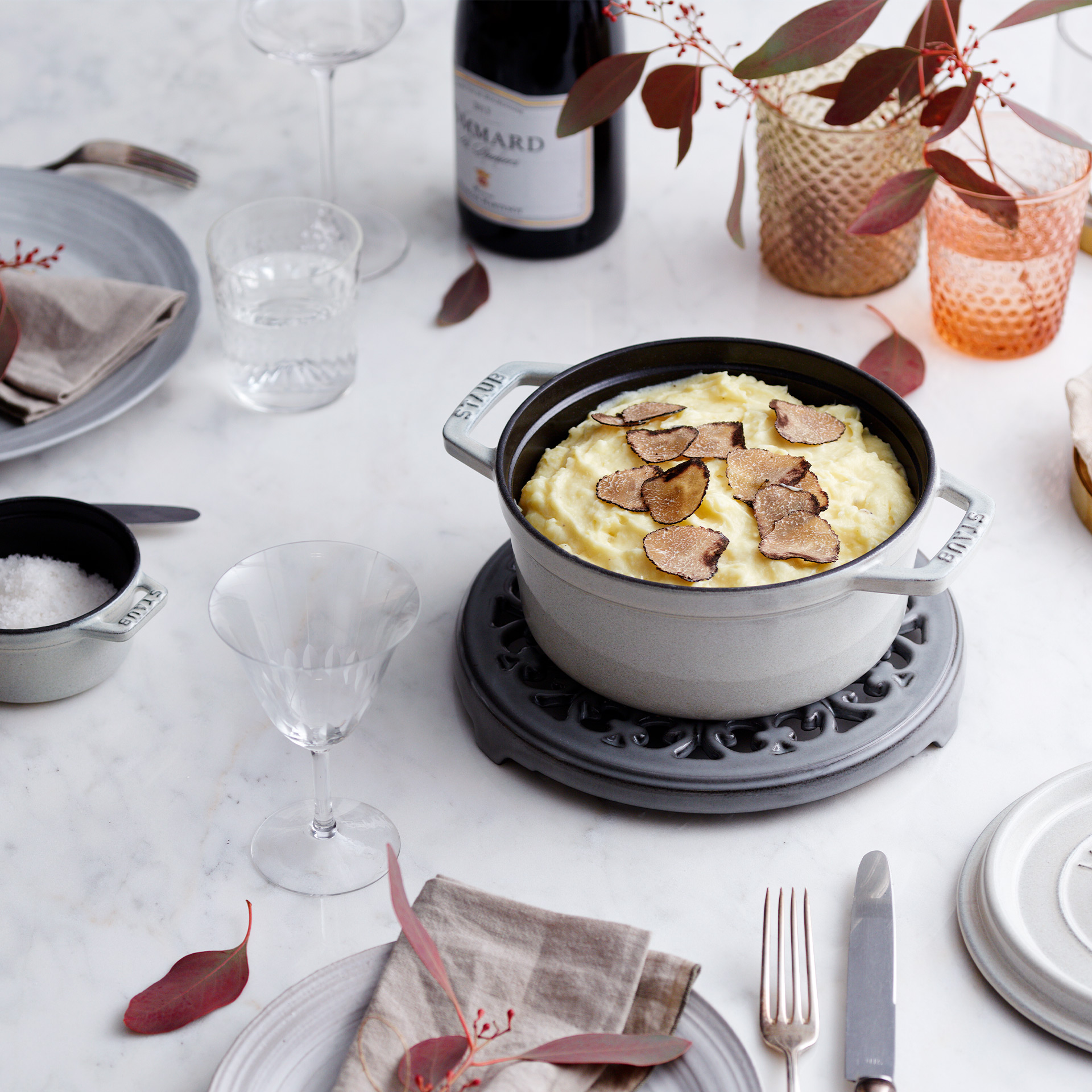 Das Gusseisenkochgeschirr und die Keramikbackformen von STAUB aus Frankreich sind gleichermaßen praktisch und wunderschön. Sie machen auf der Herdplatte, im Backofen und auch auf der Arbeitsplatte eine gute Figur und bringen mit wundervollen Aromen Wärme in jede Mahlzeit.