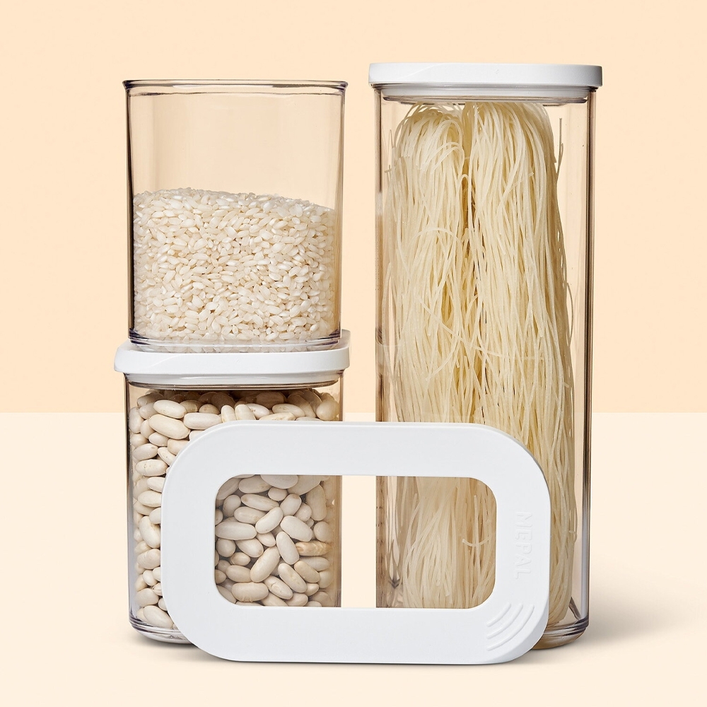 Die Modula Vorratsdosen von Mepal sind ideal für das Aufbewahren von trockenen Lebensmitteln. Größe und Inhalt jeder Vorratsdose sind abgestimmt auf die gängigsten Verpackungen und Masse von Küchenschubladen, -schränken und Kühlschränken. Dank der transparenten Seite und Deckel sieht man mit einem Augenaufschlag, was in der Modula Vorratsdose ist.