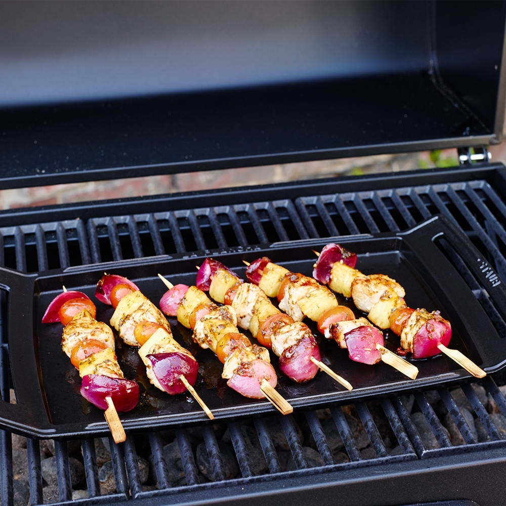 Köstlichkeiten für Freunde oder die ganze Familie zubereiten und diese anschließend gemeinsam genießen: Auf der hochwertigen Grillplatte von STAUB werden saftige Steaks, zarter Fisch, aber auch schmackhafte Gemüsegerichte ohne großen Zeitaufwand für mehrere Personen gegrillt. Einfach die Speisen auf der großen Platte platzieren - ob zusammen oder in verschiedenen Zonen - und diese bequem und besonders fettarm auf dem Gusseisen braten. Da das Material die Wärme über eine längere Zeit speichert, eignet sich die Plancha nicht nur für energieeffizientes Kochen: Mit entsprechender Unterlage wird sie zu einer hochwertigen und modernen Servierplatte auf jeder Tafel. Die multifunktionale Grillplatte von STAUB kann auf dem Grill und auf allen Herdarten genutzt werden, zudem ist sie induktionsgeeignet. Zum Schutz des Materials sollte hierbei jedoch auf die Booster-Funktion verzichtet werden.