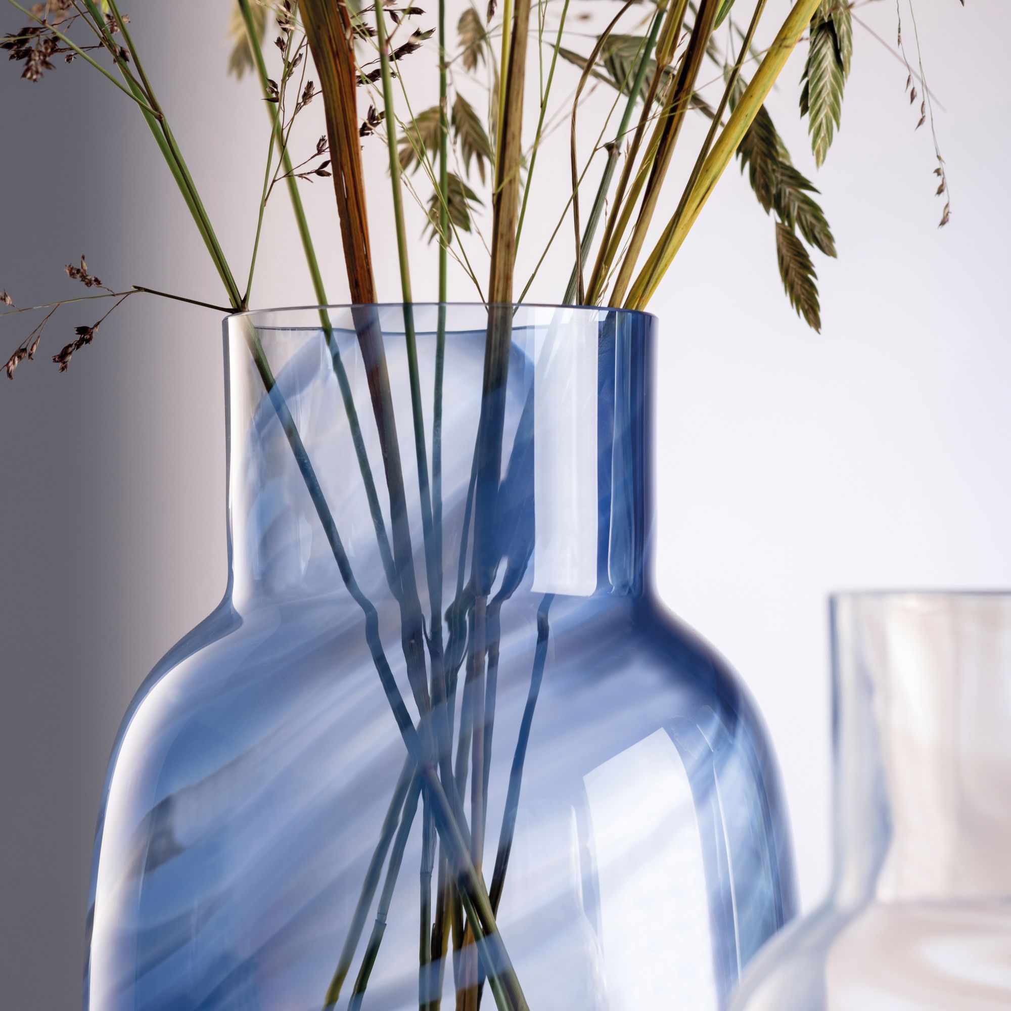 Die 22,0 cm große, mundgeblasene Vase Waters blau von Zwiesel Glas erinnert mit ihrem einzigartigen natürlichen Farbton an Wasser und das Rauschen eines Baches. Der natürliche Farbverlauf bildet einen Flusslauf ab, der sich seinen Weg durch die Natur bahnt.