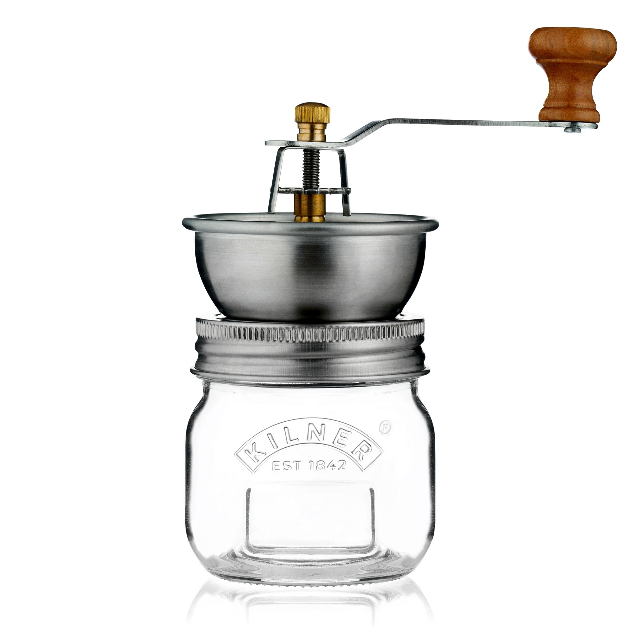 Kilner - Coffee grinder with crank handle and glass - 500 ml - Adjustable grind size - Elegant, high-quality design made of stainless steel and ceramic grinder