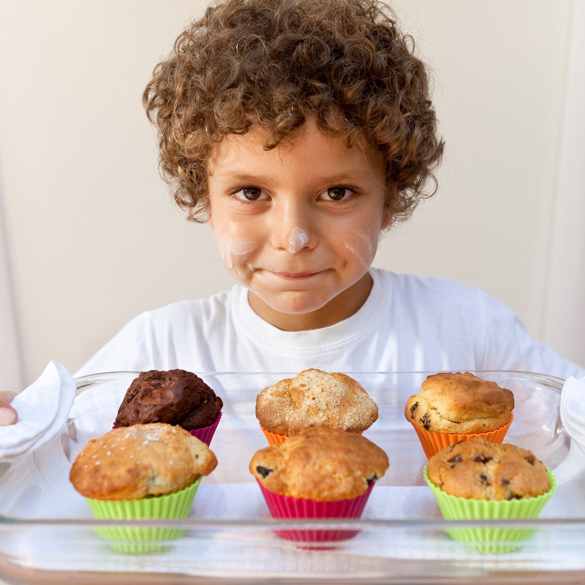 Lékué - Silicone muffin tins, set of 12, 7 cm colorful - Made of 100% platinum silicone, completely non-stick shapes.
