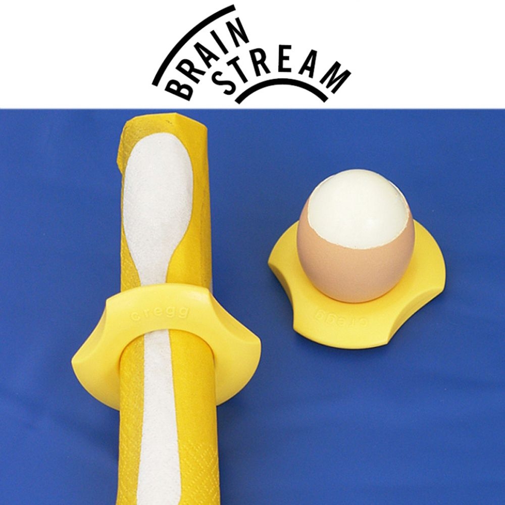 Cregg has a ring and three notches on the outer side of the ring. This is to a better grip in the use as a egg shells cutter. Inside the ring, triangular-scale cutting wheels are integrated. Set Cregg with the cutting wheels down on the egg, pressing lightly and turn. After turning the egg shell is cut and you only need to pull off more easil