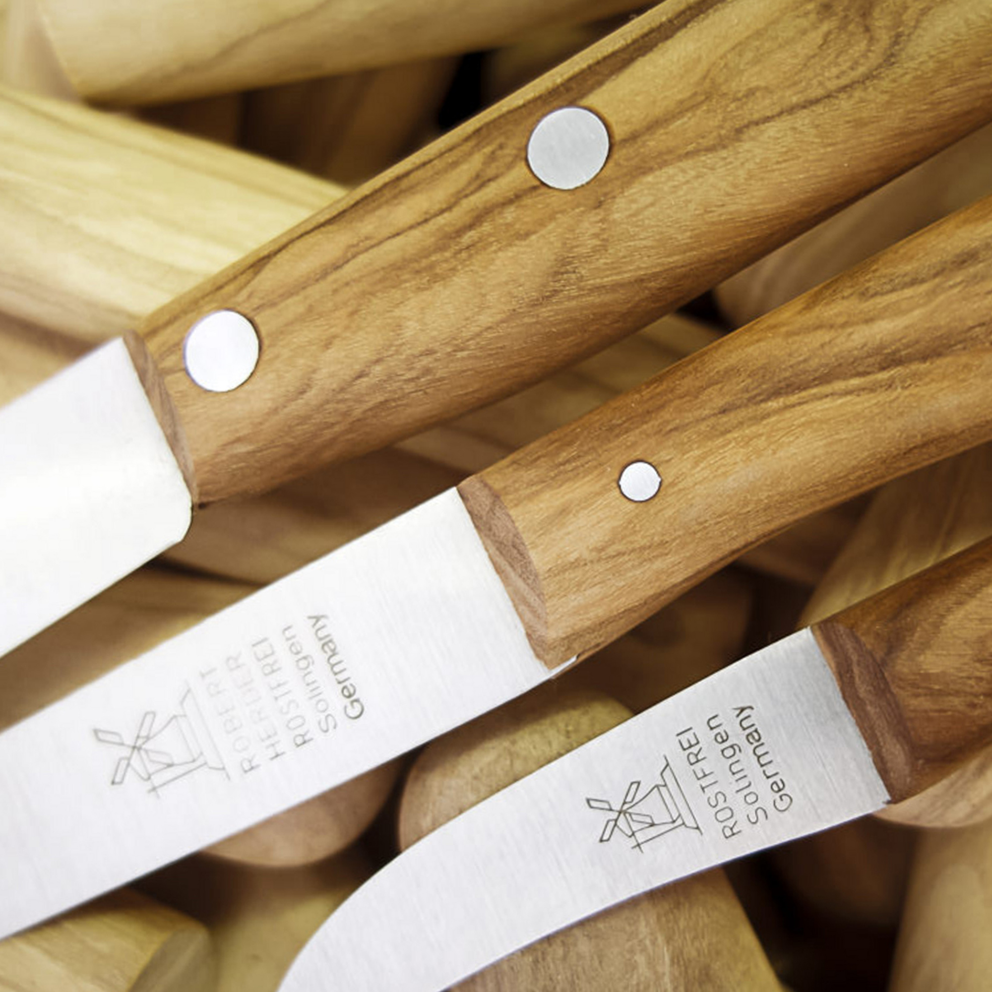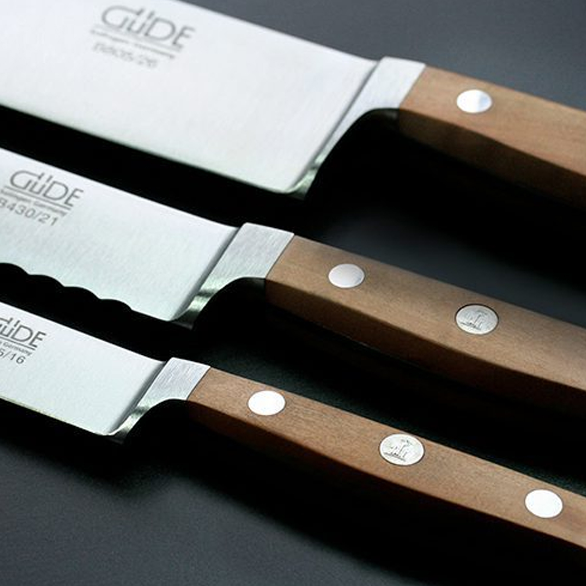Our knives are very sharp and should therefore be stored safely (in a place out of the reach of small children). We recommend storing high-quality knives in a knife block, on a magnetic strip or in a knife bag/case. In order not to prevent the blades, they should not lie on top of each other or be stored together with other kitchen utensils, e.g. in a drawer.