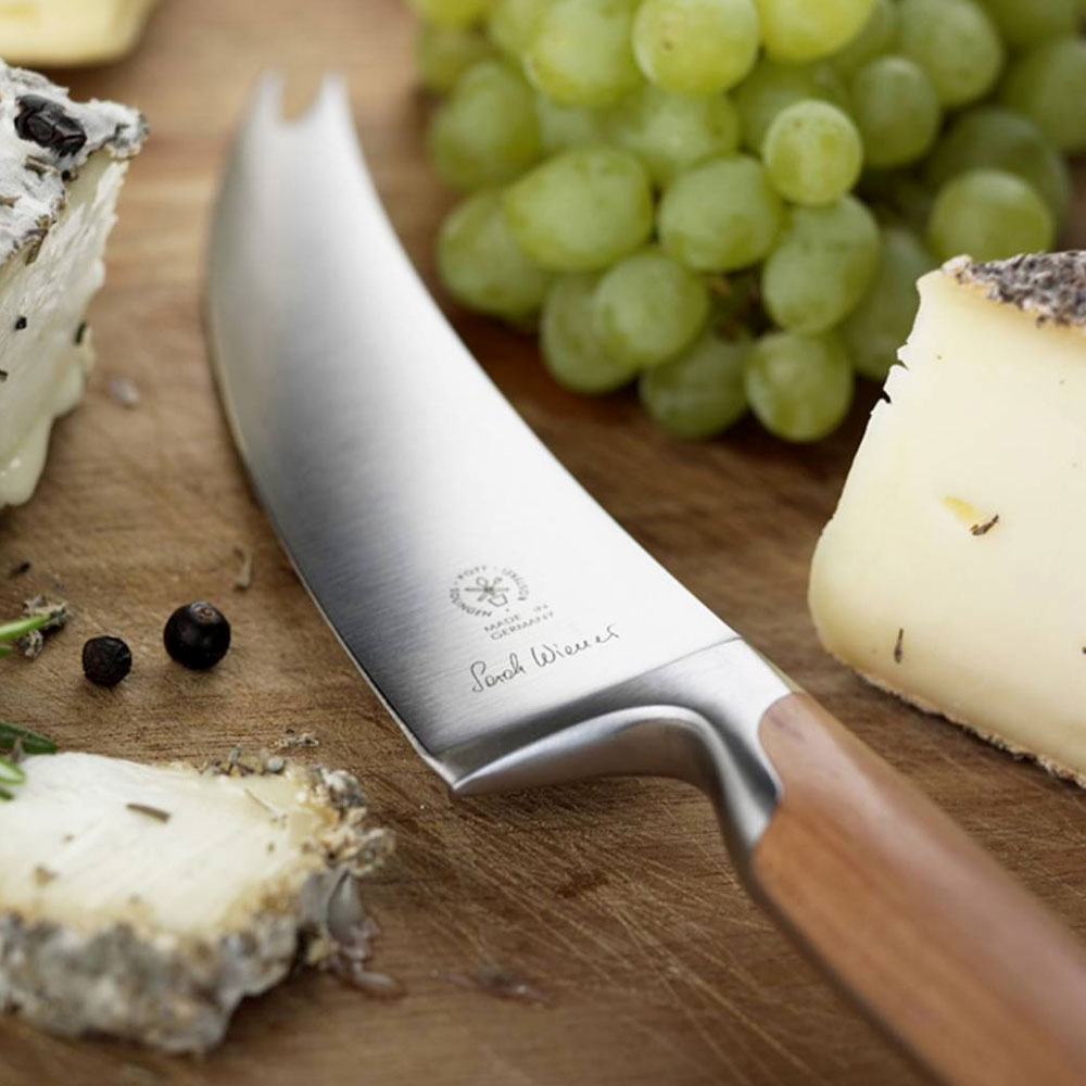 After each use, wash the knife under running lukewarm water with a sponge or cloth and dry briefly. Cook's knives must not be put in the dishwasher! The aggressive salts and the heat attack the steel just like rust film. Likewise, the knife must not lie in the possibly filled sink. Leftovers of mustard or horseradish can also eat into the steel if they are not washed off.