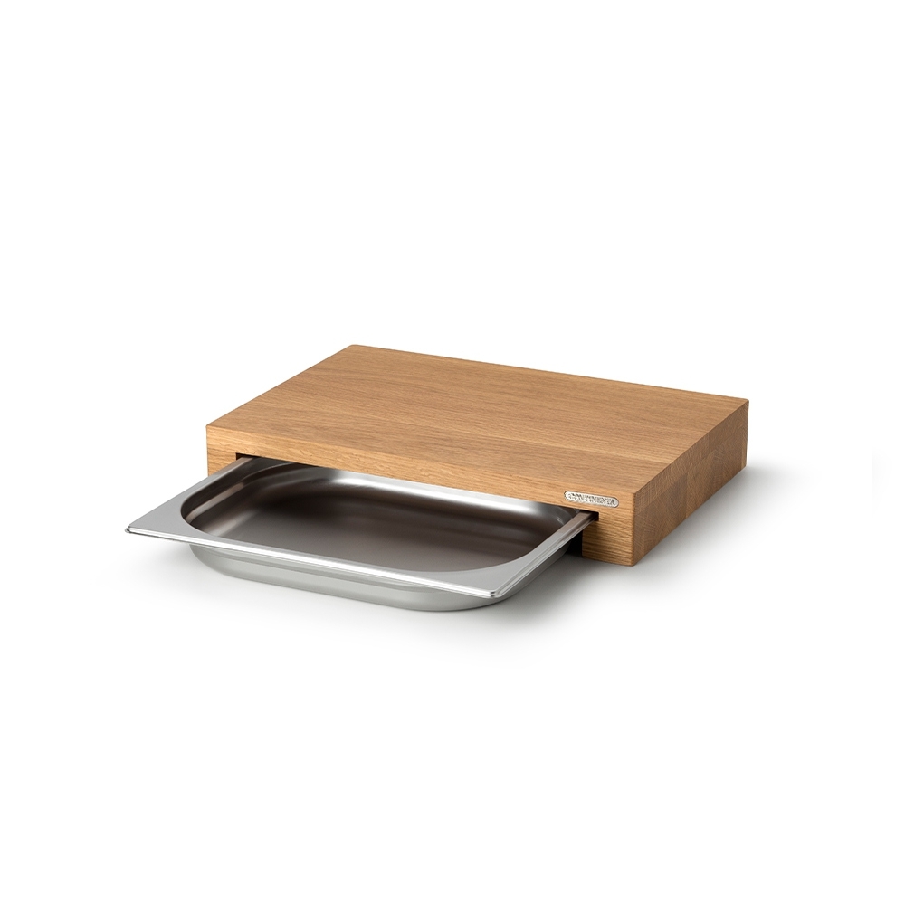 Continenta - Cutting board with stainless steel drawer, oak - A cutting board with a large stainless steel drawer to take out