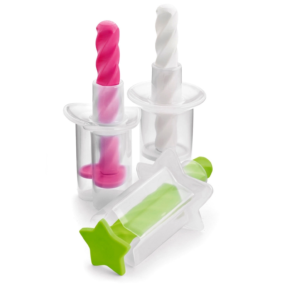 Lékué - Ice Molds, Set of 4, Pen, Foot, Twister, Rocket - Ideal for making ice cream based on fruit, milk or yoghurt.