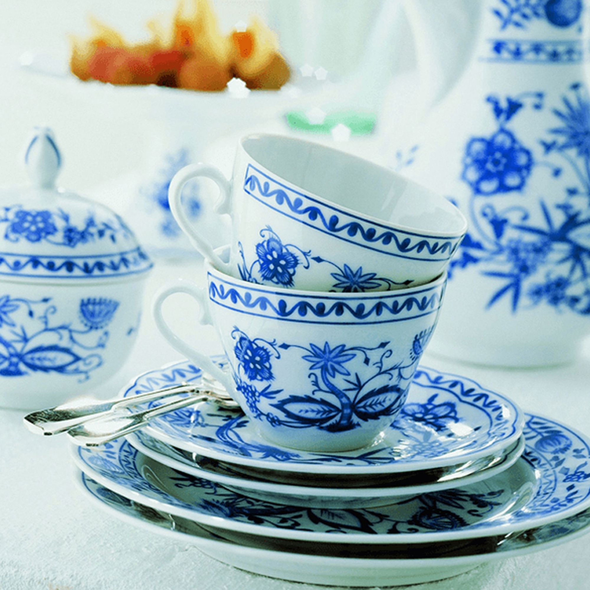 The porcelain tableware with pattern tells a long story. Already since 1730 it is developed according to Far Eastern models. Thus, the tableware has already been through many journeys, but also intercultural misunderstandings. Since then there have been countless variations. Our blue and white classic still adorns many coffee tables throughout Germany and around the world.