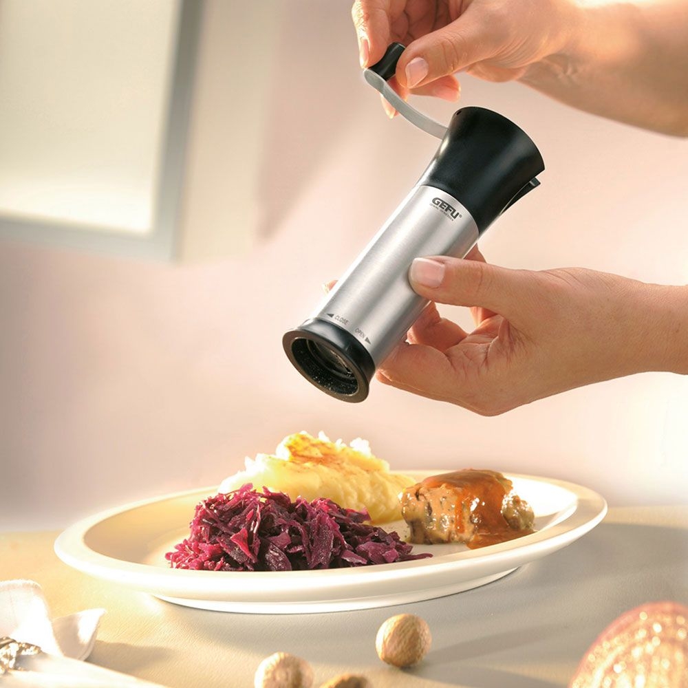 - Lock-in function (marked Open - Close) for safe filling with up to 1 nutmeg.