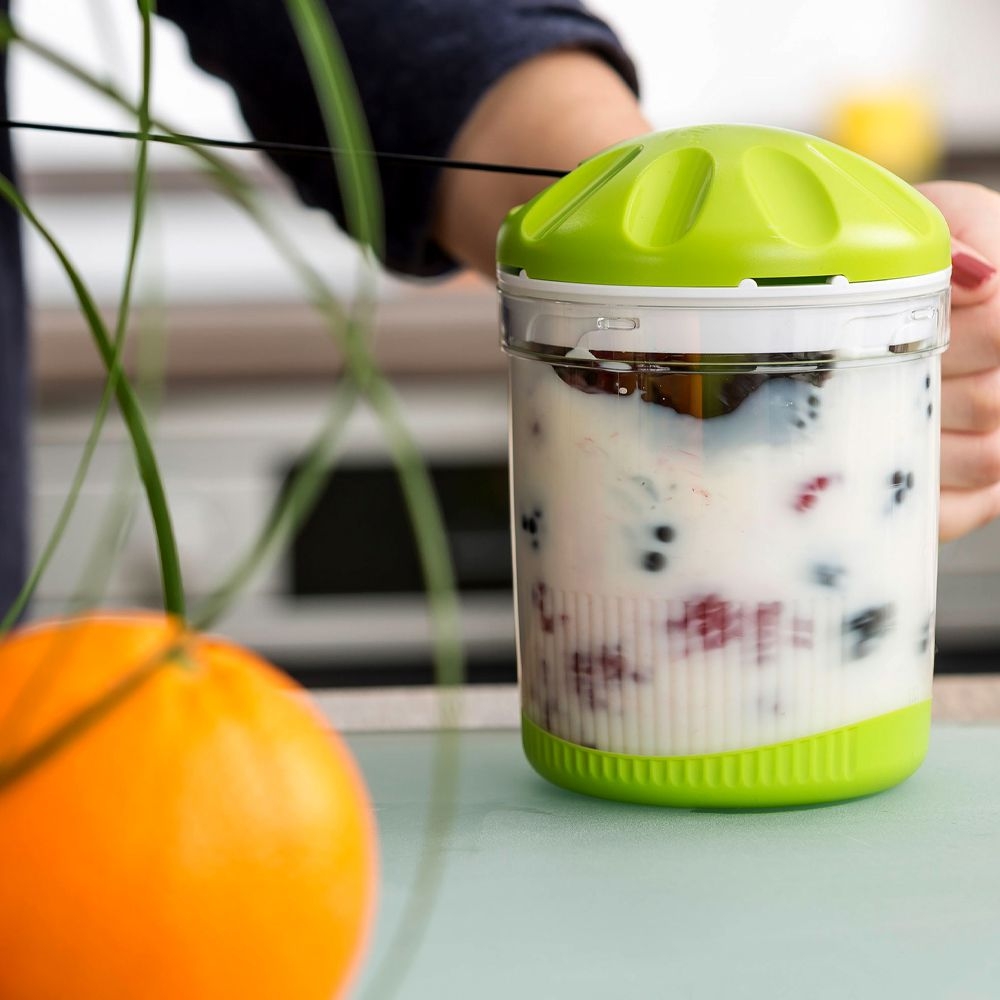 With the Twist N Joy, you can process food in no time: Blend soups, sauces, dips or desserts, chop herbs or vegetables and prepare baby food, smoothies and mixed drinks - all with one practical appliance! The Twist N Joy convinces with its modern colourful design and easy handling and cleaning.