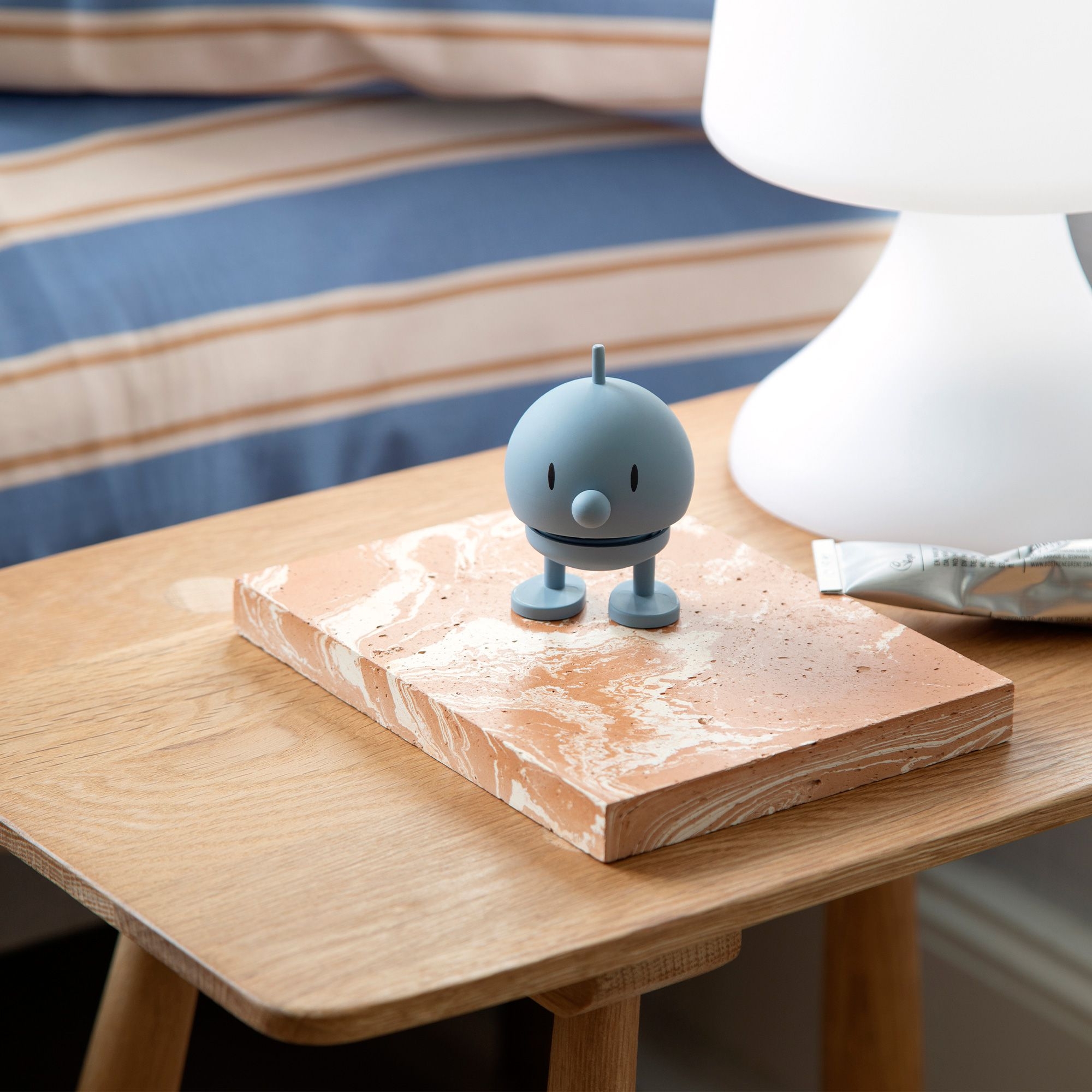 With a strong belief in the power of smiles, Gustav Ehrenreich created his cheerful Hoptimist movement in the late 1960s. The goal was to create a figure that would form an eternal reminder to stay positive and optimistic. For although the 1960s are often referred to as "The Happy 60ies," the decade was marked by turmoil. Therefore, Ehrenreich's design was a welcome source of joy in an otherwise turbulent time. Bimble and Bumble represent the very first Hoptimists from the designer's hand: a girl dressed for school with smiling eyes and an attentive boy with a cotter pin on his head. Today, the cheerful Hoptimists are a part of Danish design history and bring joy all over the world. The figurines are available in four different sizes and in a wide range of colors, spreading lots of energy, good humor and joy. There is guaranteed a Hoptimist for every occasion and for every person.