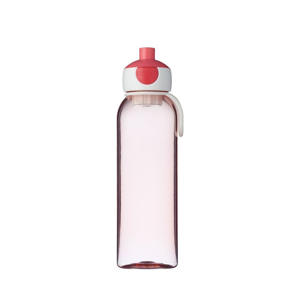 The transparent, refillable and leak-proof Pop-up Water Bottle by Mepalis practical for school, during sports or on the go. You can always see how much water is left in the bottle and this encourages you to drink the rest. This helps to stay hydrated and a small contribution to a healthier lifestyle. The bottle has a volume of 500 ml and is equipped with a pop-up cap. You can easily open the bottle by pressing the button on the side of the lid. You close the bottle again by pressing the mouthpiece. The water bottle also has a practical silicone strap that you can use to carry the bottle with just one finger. The pop-up drinking bottle is not suitable for the use of carbonated drinks.